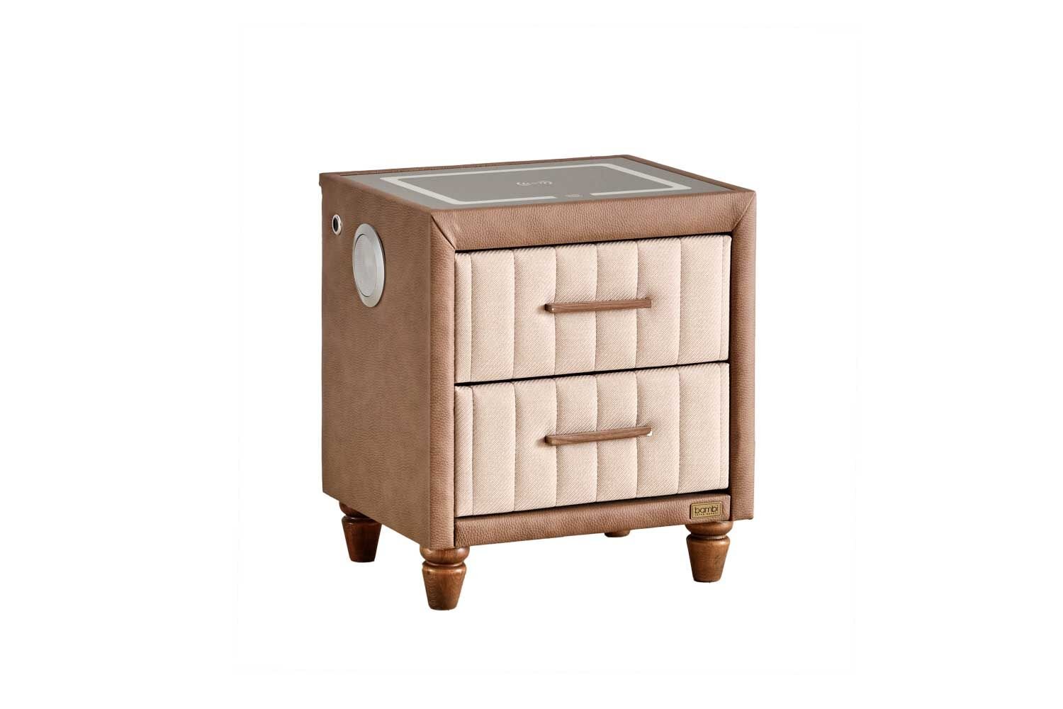 Dankzij Bluetooth-technologie verbinden de Bambi Smart Nachtkastjes zich met uw telefoon, tablet of computer, zodat u in uw slaapkamer kunt genieten van muziek via het geluidssysteem.
